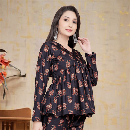 Women's Black Floral Buta Printed Co-Ord Set โ "Noor" Designer Ethnic Loungewear