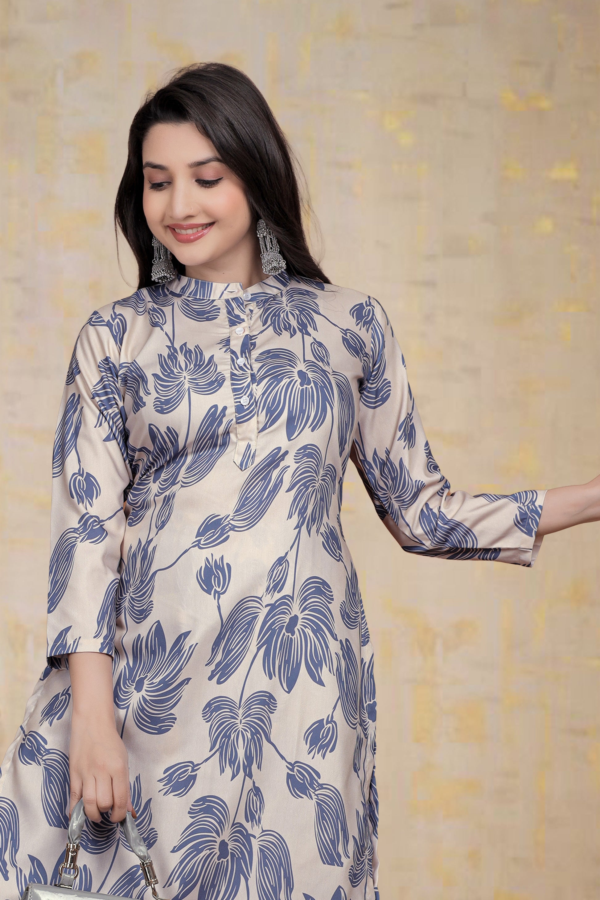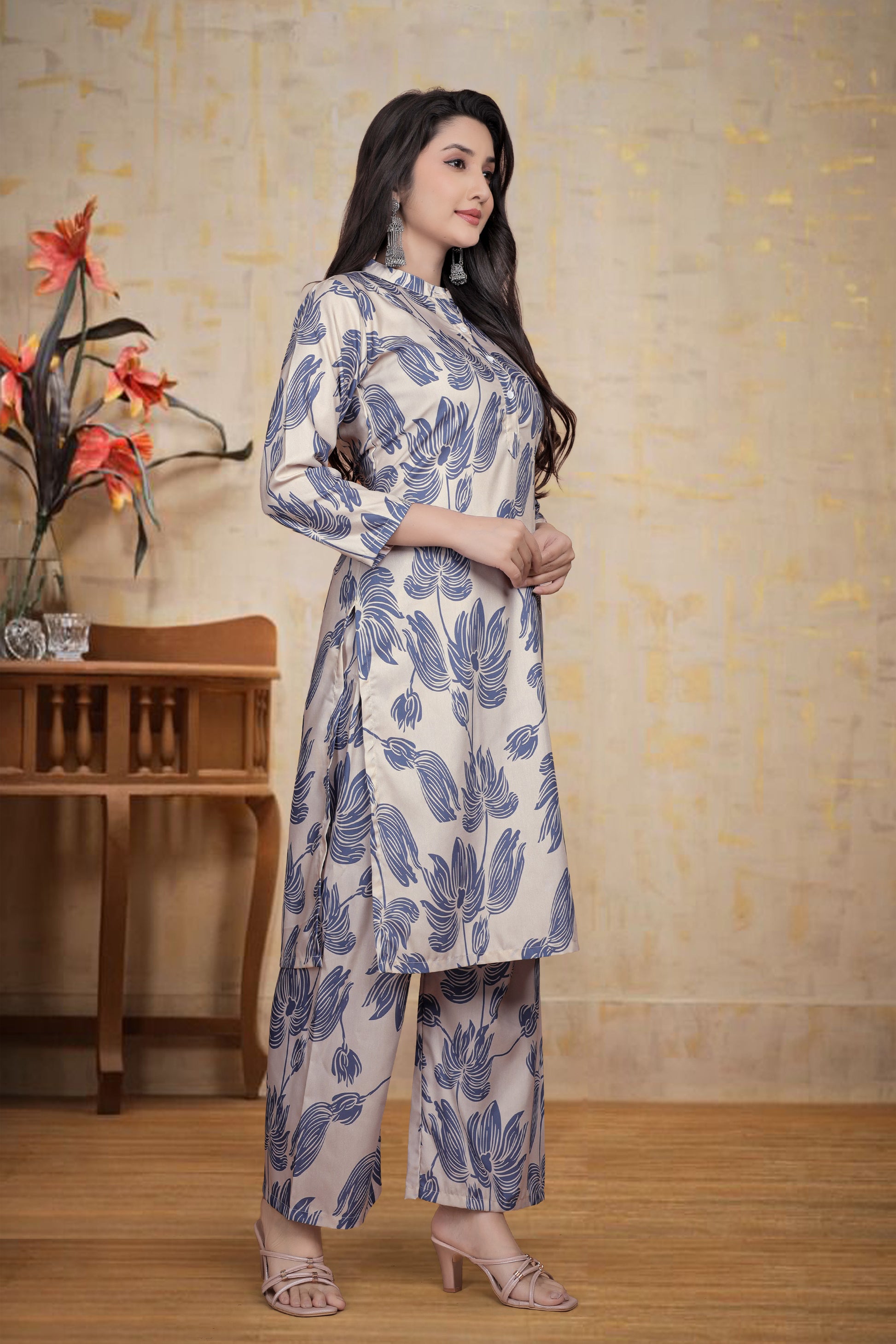 Elegant Cream & Blue Floral Co-Ord Set for Women โ Designer Ethnic Wear